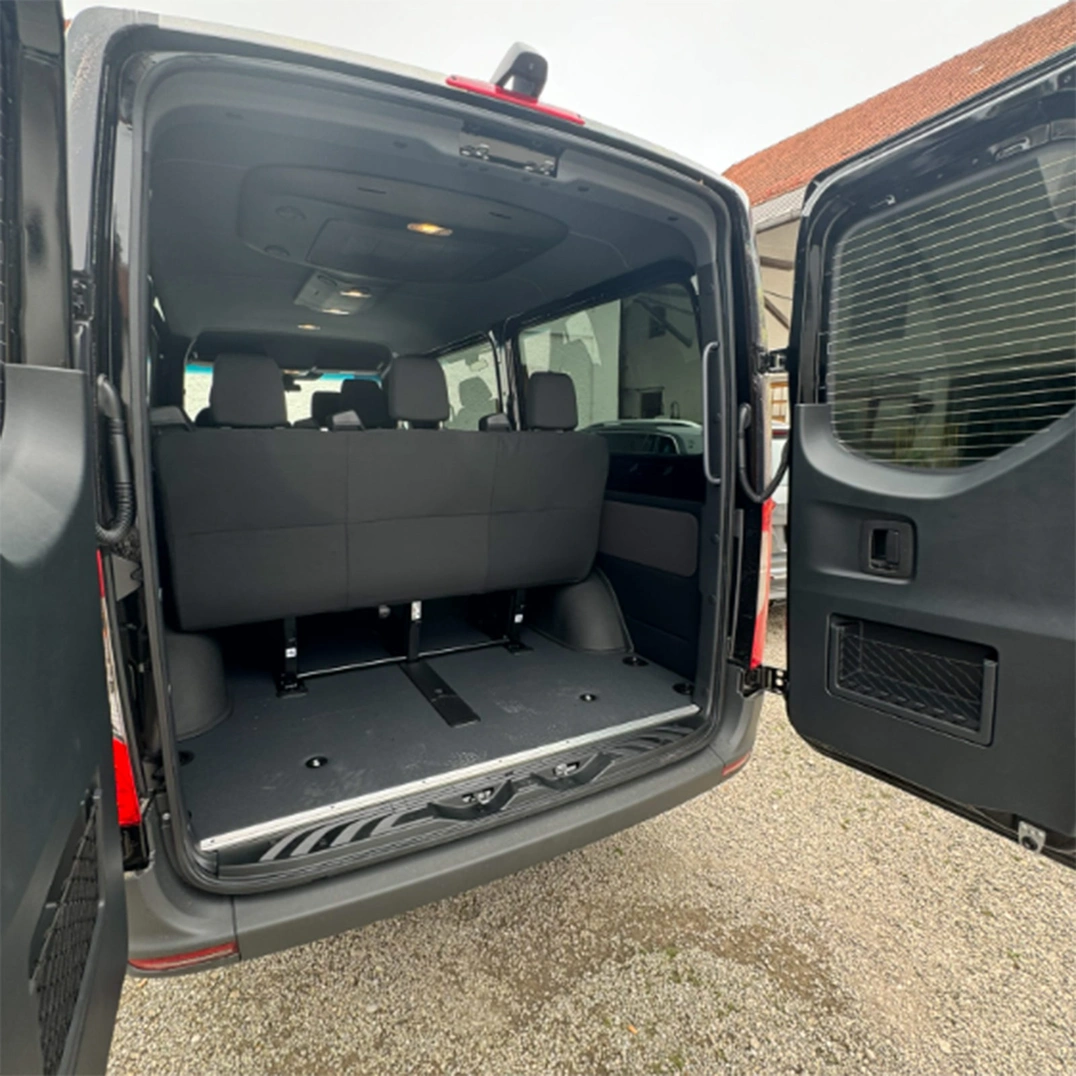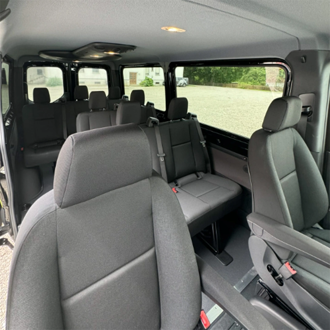 Der alte Mannschaftsbus ist weiterhin im Einsatz. Hier gilt das Prinzip: kurze Strecke mit dem alten Bus, längere Strecke mit dem neuen Bus. Die Bauart und Größe ist analog zum alten MB Sprinter ausgelegt, allerdings hat das neue Fahrzeug Klimaanlage und ein paar Extras mehr. Das Gepäckabteil hinter der 4.Reihe ist allerdings deutlich kürzer. Falls mehr Gepäckraum benötigt wird, können die Sitzbänke der Reihen 2, 3 und 4 ausgebaut werden.