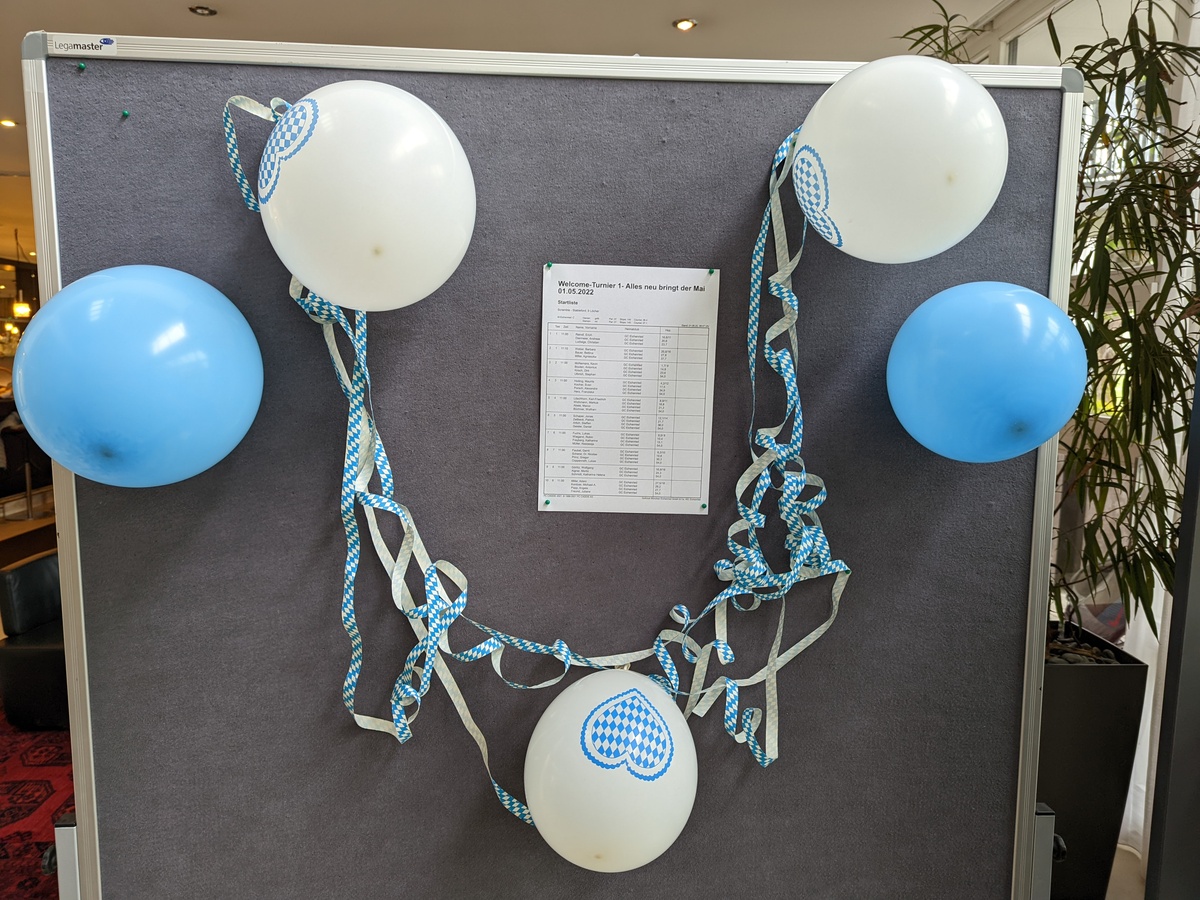 Weiß-blaue Luftballons wiesen den Weg zur Startliste des Welcome-Turniers.