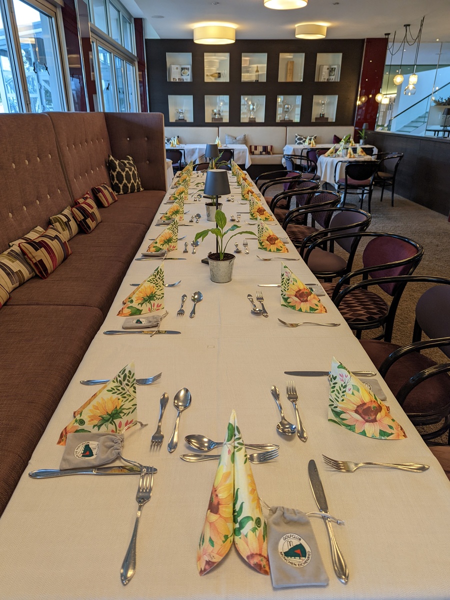 ´Eine schön gedeckte Tafel erwartete alle nach der Runde. Es gab bayerischen Schweinsbraten oder Gemüse-Pasta für Vegetarier.