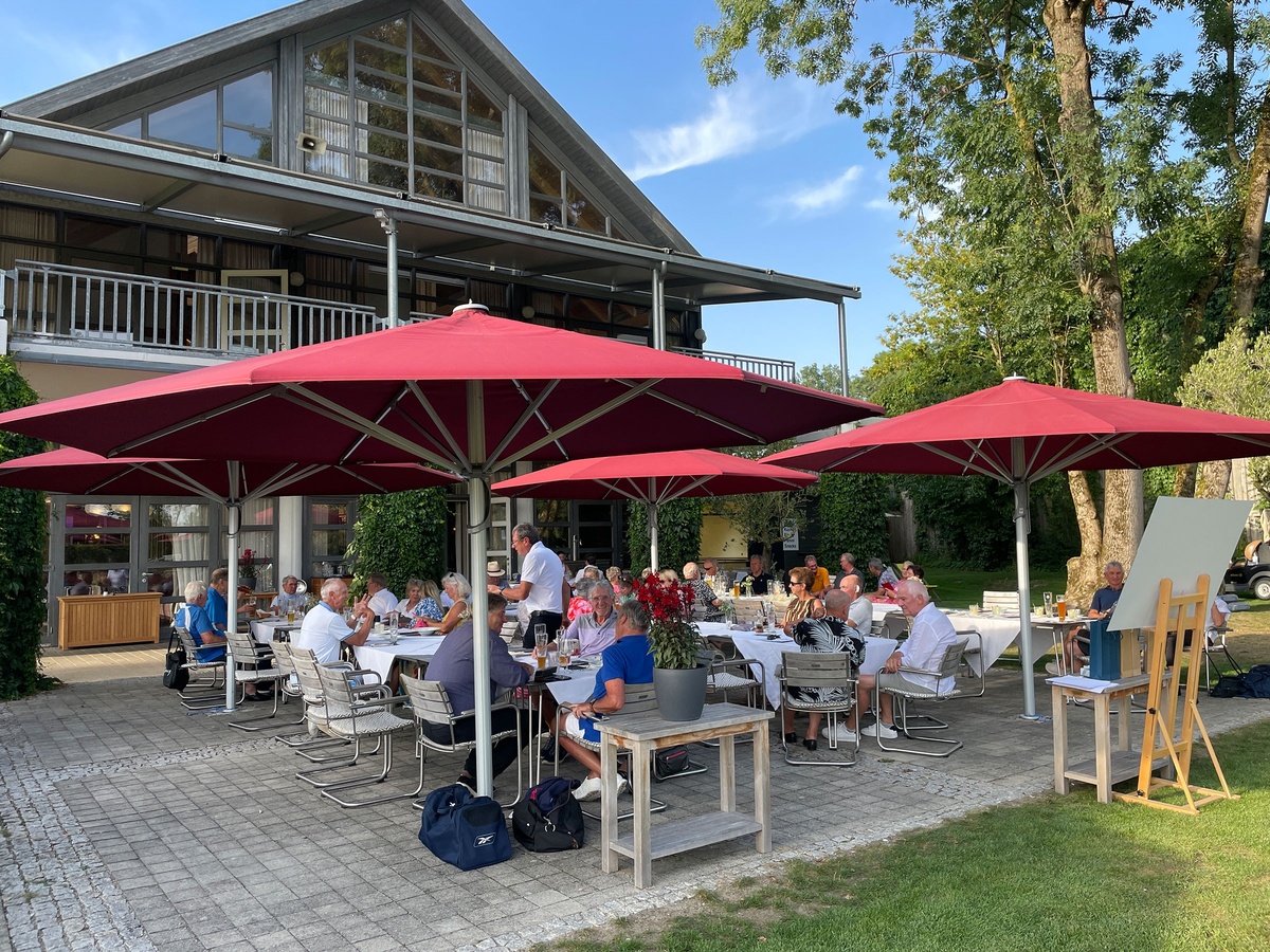 Herzlicher Club-Austausch auf der schattigen Terrasse.