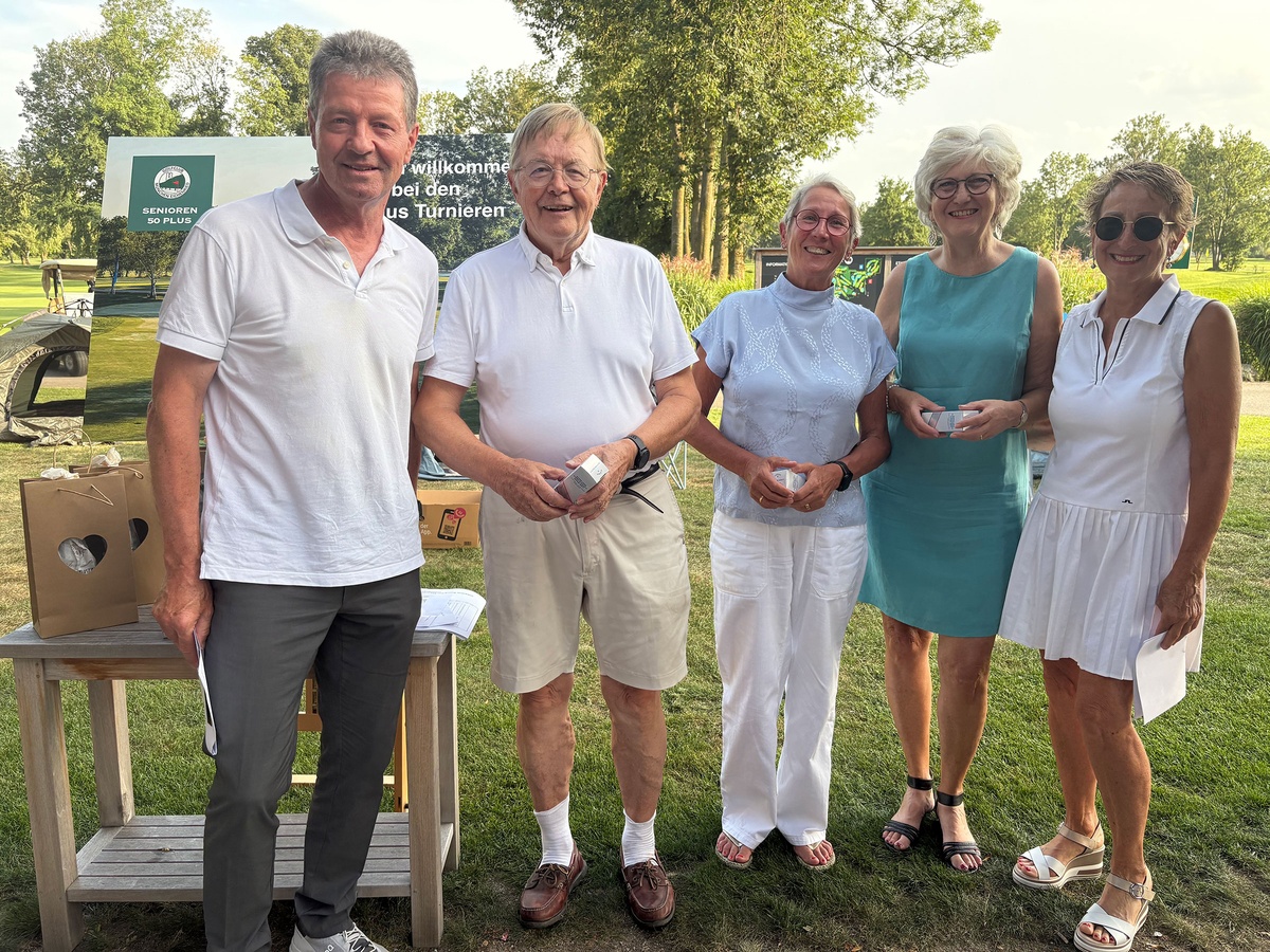 Die Bruttosieger Bruno Walther und Charlotte Fischer vom GC Wörthsee, umrahmt von den Eichenrieder 50plus-Captains Otto Hinteregger und Sophie Jäger