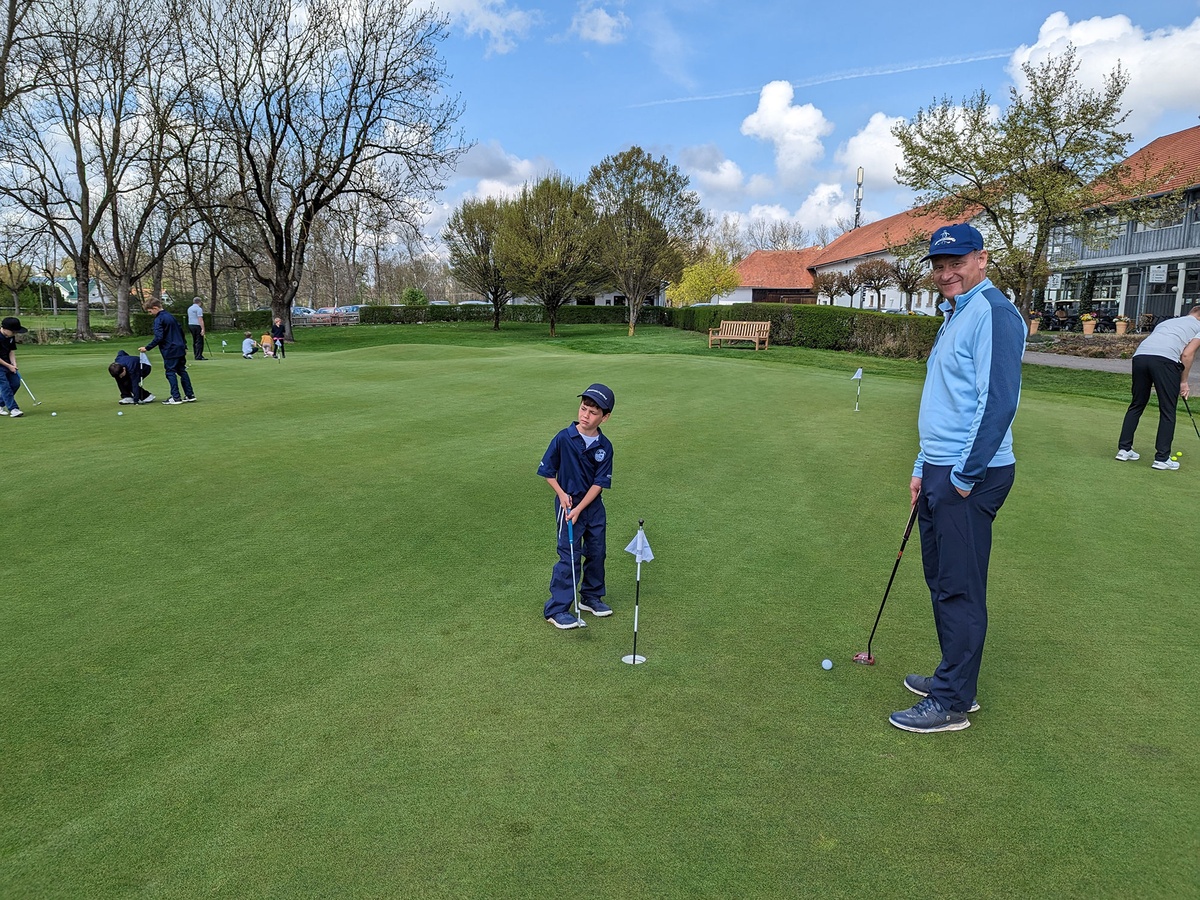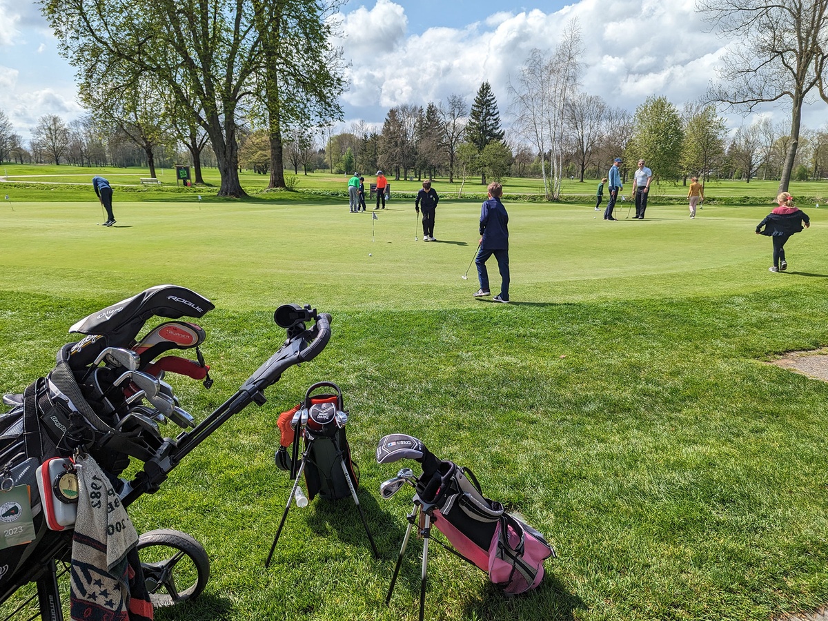 Familiengolf par excellence: Auf dem Putting Grün trafen sich große und kleine Bags bzw. große und kleine Golferinnen und Golfer.