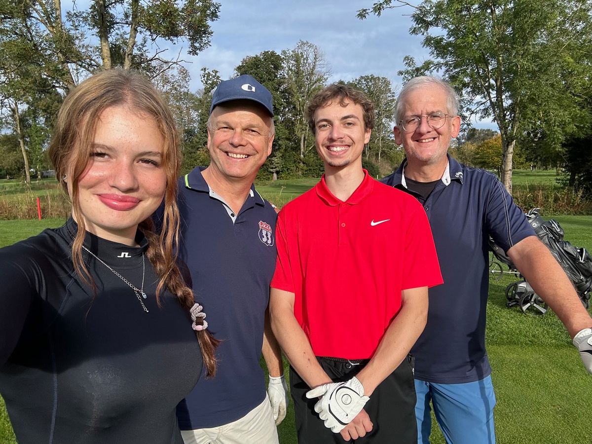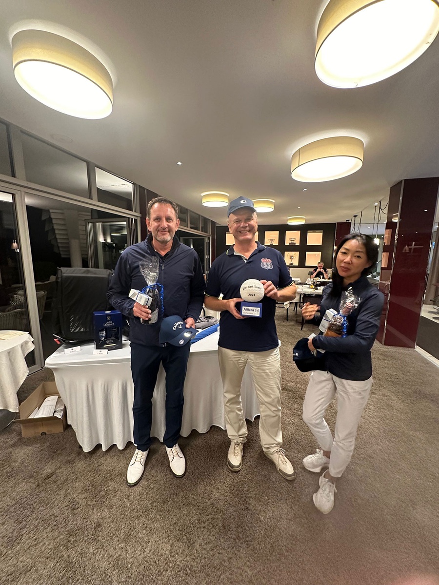 Beide gewannen sowohl den Longest Drive als auch den Nearest to the Pin: Manfred Woitzik und Weili Berger-Cai flankieren Marcus Ziegert.