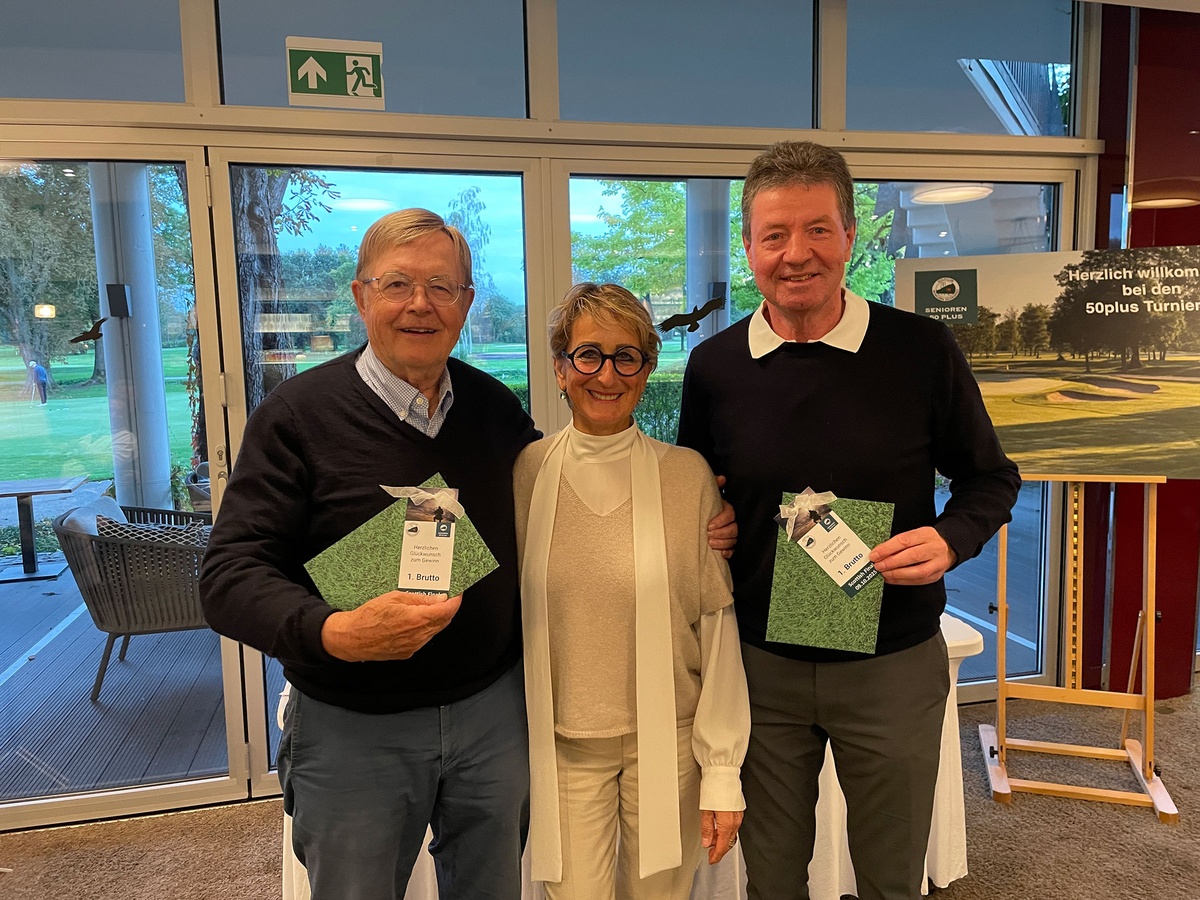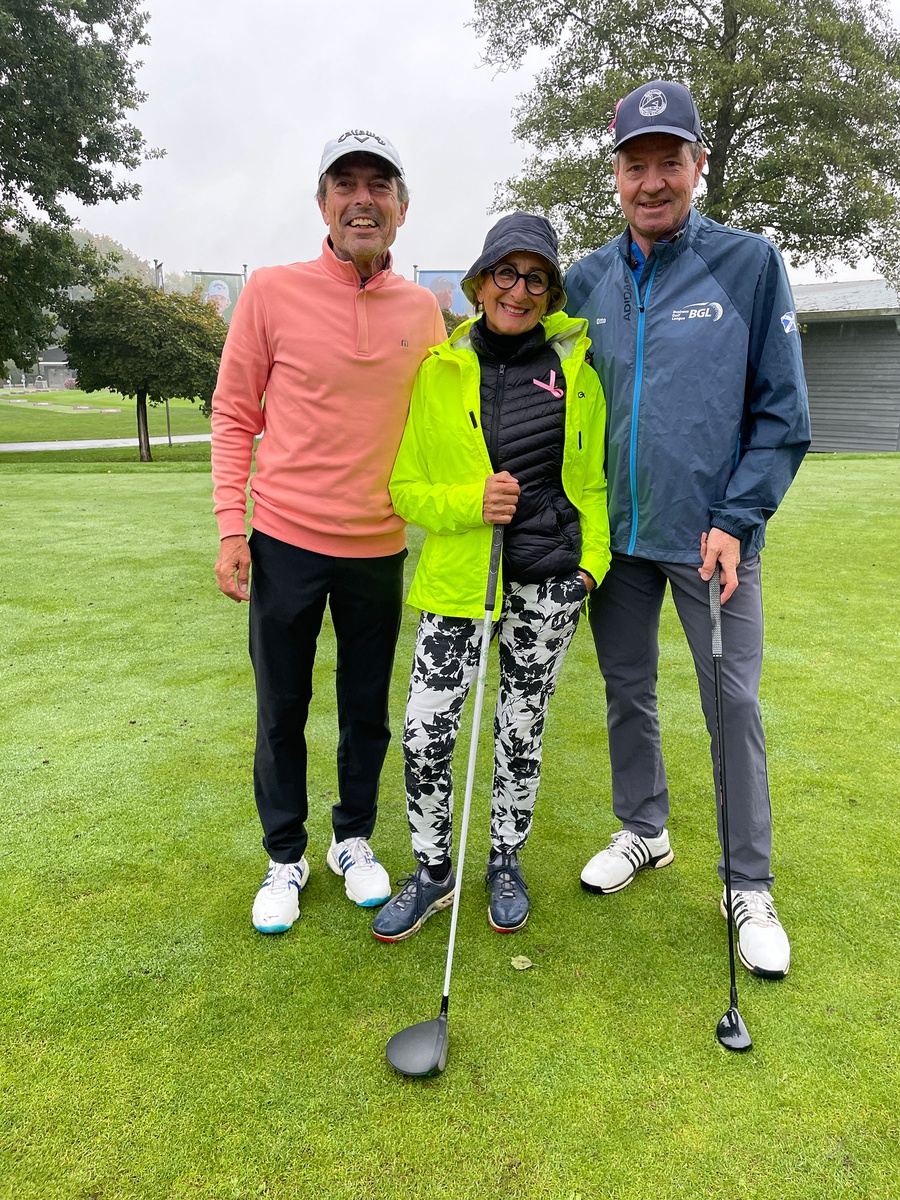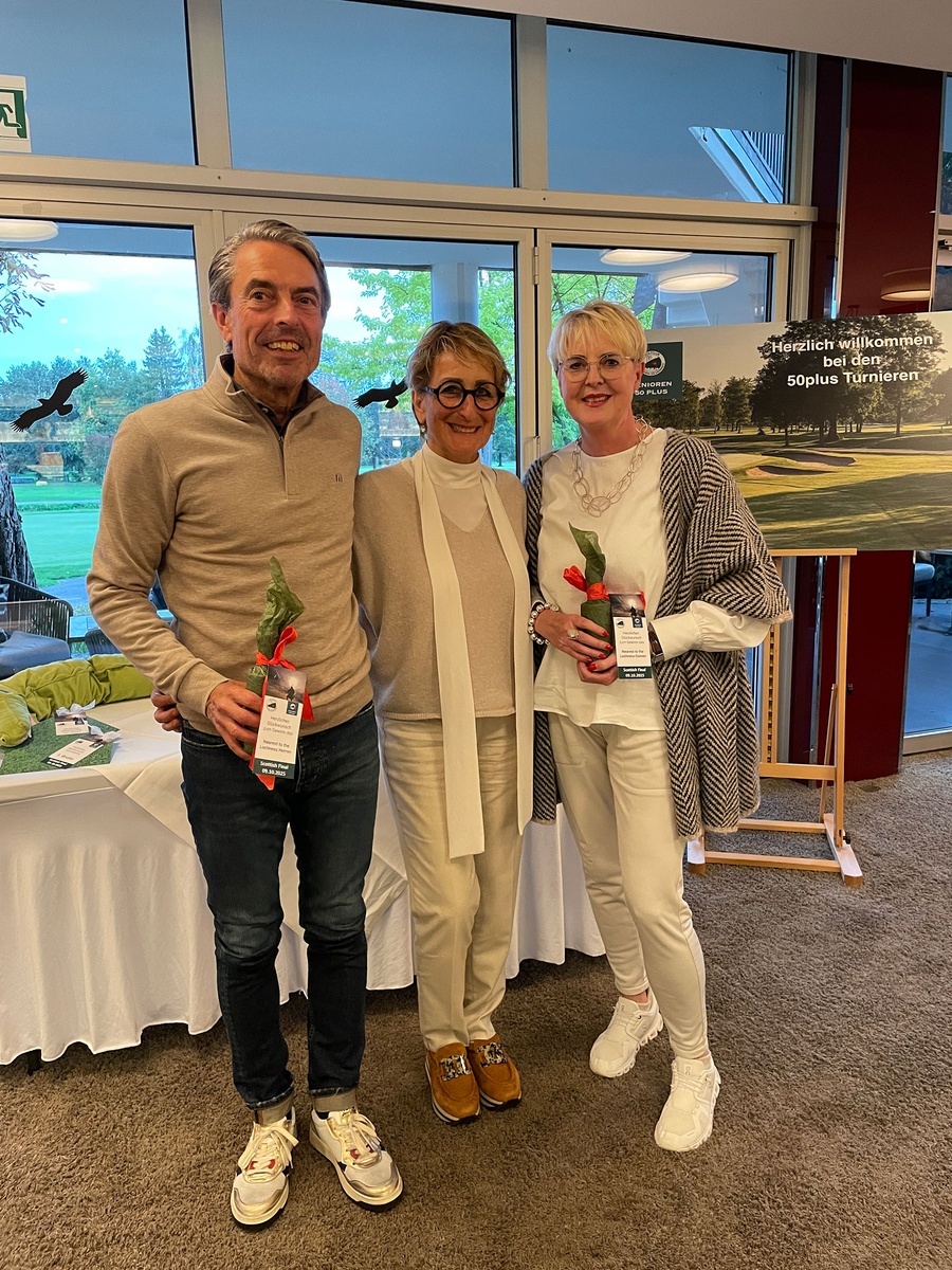 Nearest to the Loch Ness: Sophie Jäger, Mitte, gratuliert Roland Hagenbucher und Iris Kretz-Stienen zu ihren präzisen Schlägen.