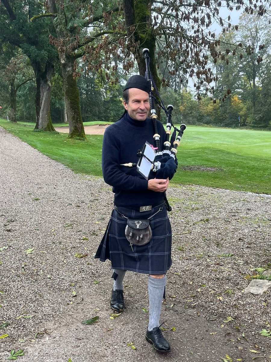 Stilecht gewandet: Geschäftsführer Wolfgang Michel spielte Dudelsack beim „Scottish Final“ der Senioren 50plus.