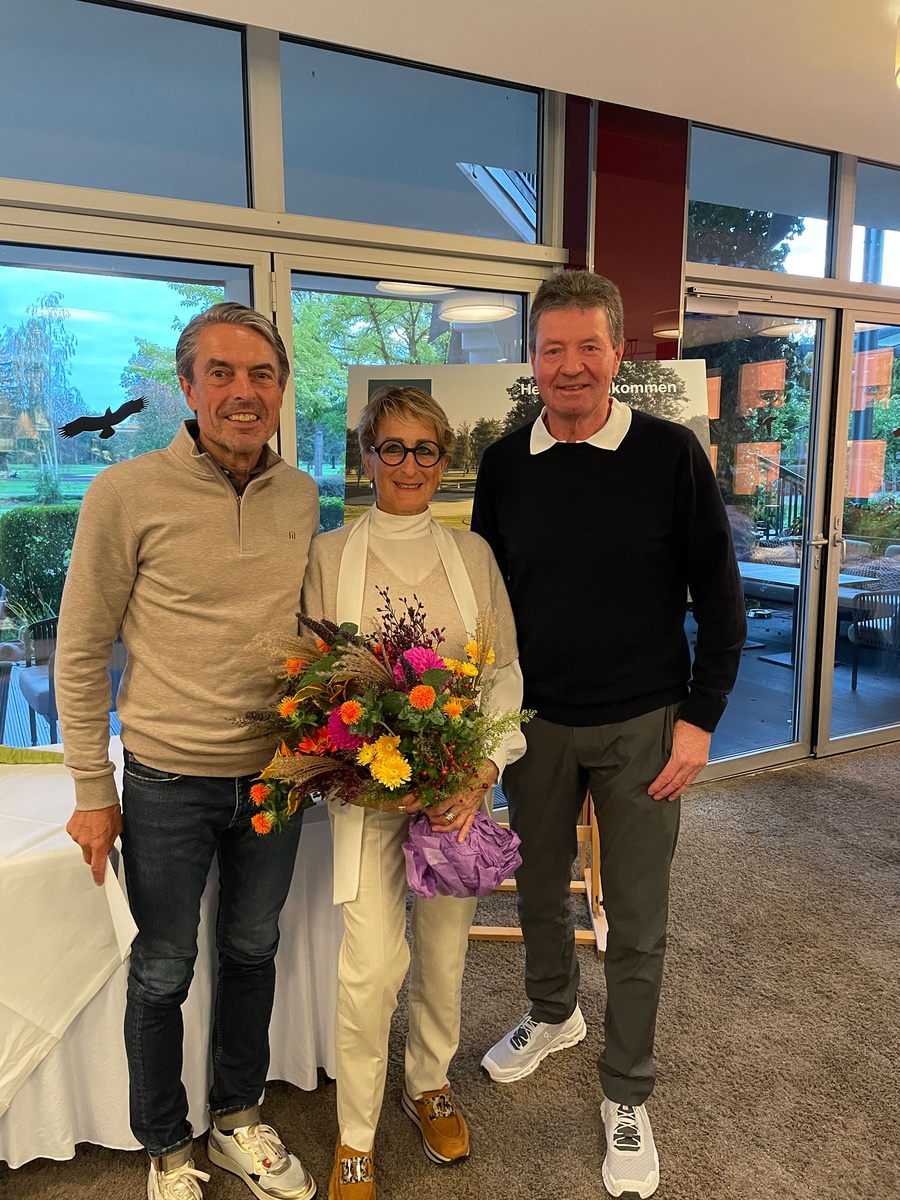 Blumen als Dank: Sophie Jäger freute sich über die charmanten Worte von Roland Hagenbucher, links, und Otto Hinteregger.