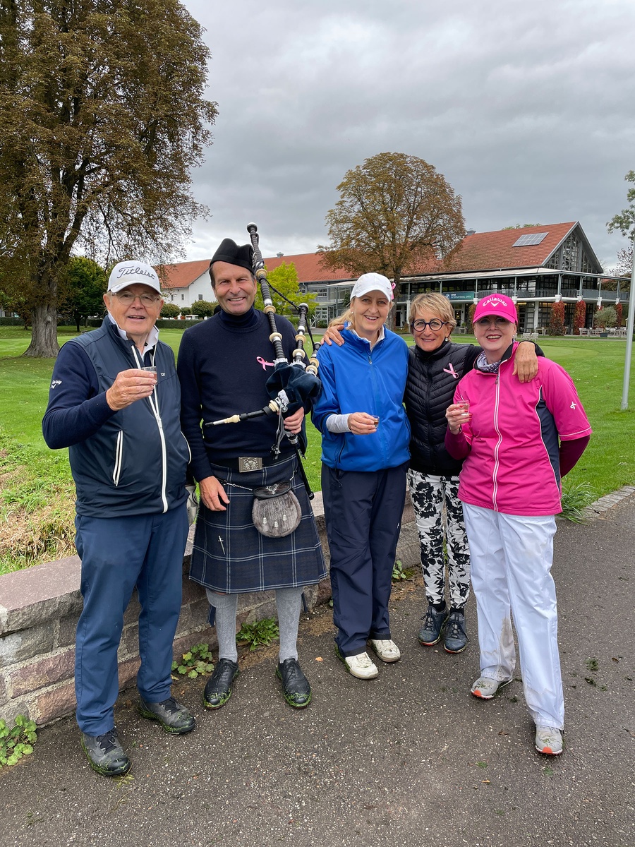 Ein schottischer Whisky nach der Runde: v. l. n. r. Hans-Uwe Janka, Wolfgang Michel, Ladies Captain Karin Hoyler, Sophie Jäger und Iris Kretz-Stienen