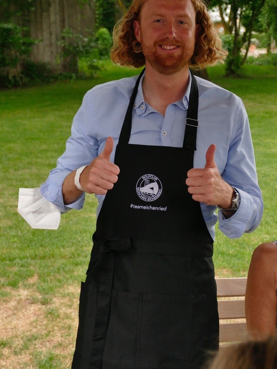 Pro Hans-Christian Buchfelner zeigt die Eichenrieder Grillschürze im Einsatz.