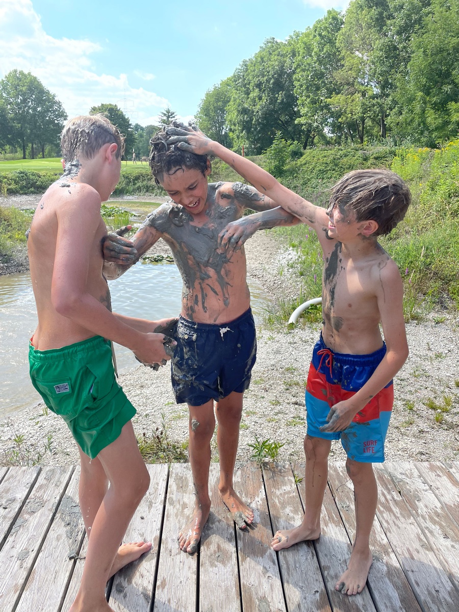 Nach Disziplin beim Golfspiel durfte es auch wild zugehen bei der Schlammschlacht am Badeteich.