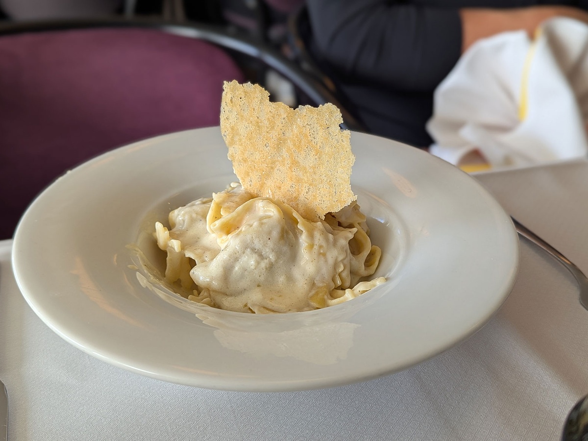 Tortelloni mit Trüffelfüllung und Parmesanfondue für die Vegetarier