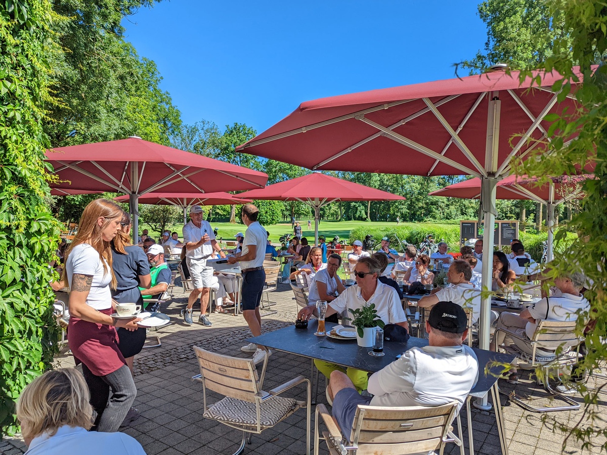 Was für ein schönes Bild: Sommergefühl in mehrheitlich weißer Kleidung bei der Siegerehrung auf der Terrasse.