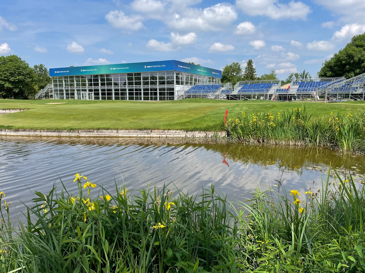 Der Fairway Club am 18. Loch steht schon für die BMW International Open vom 22. bis 25. Juni 2023.