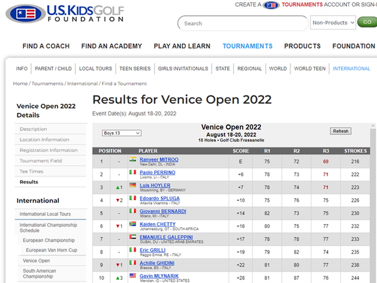 U.S. Kids Golf Venice Open, 18. - 20. 8. 2022