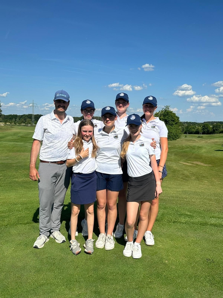 Coach Pascal Gabsa ist zufrieden mit Eichenrieds Mädchen: hinten v. l. n. r. Mathilda Müller, Elena Fricke und Emily Janssen, vorn v. l. n. r. Katharina Metz, Sophie Günther und Lara Wemhoff