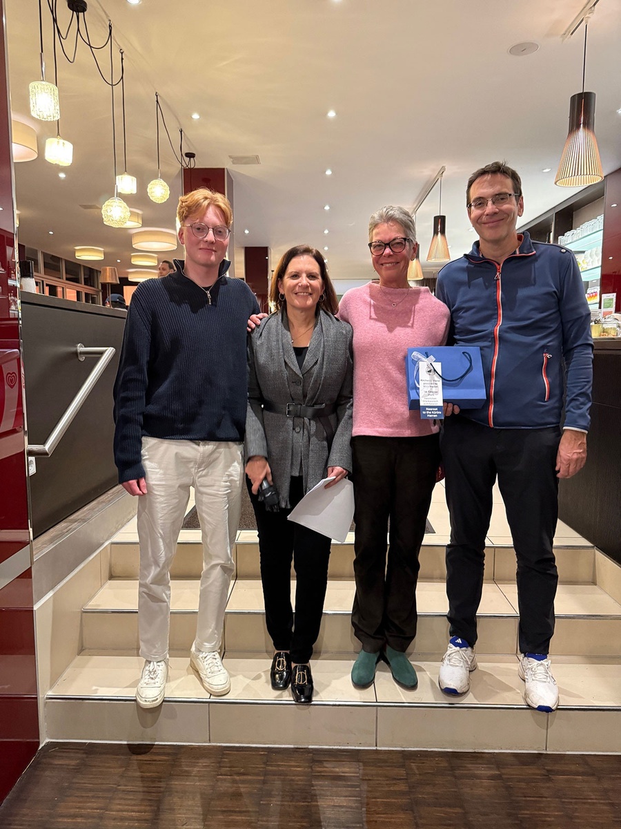 1. Nettosieger: Vera Vaubel, links, gratuliert Elena Liebethal und ihren Mitspielern Johannes Kintzig, Alexander Schwab und Karl Niklas Kranzbuehler (v. l. n. r.).