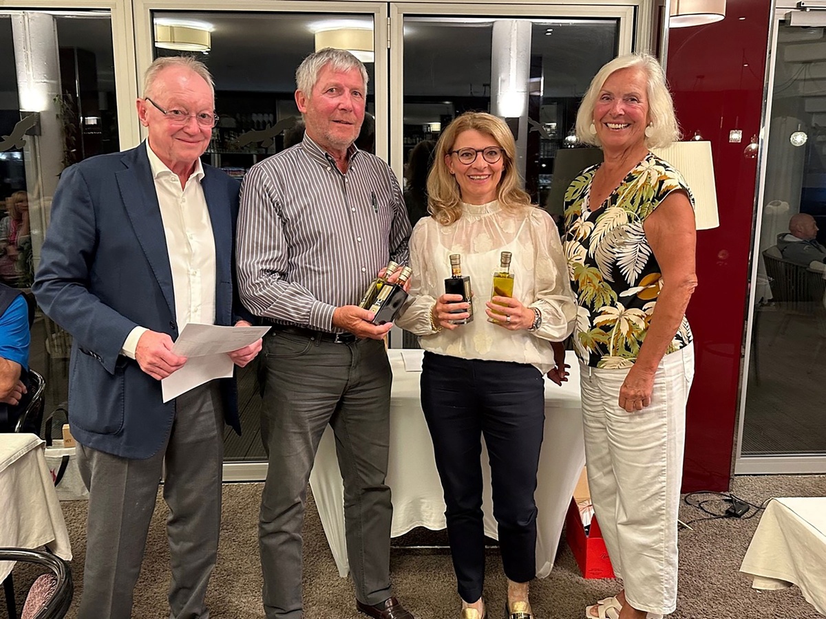 Ein gemischtes Paar als Netto B-Sieger: Olga Hauschulte und William Tiefenbacher. Links und rechts Andi und Barbara.