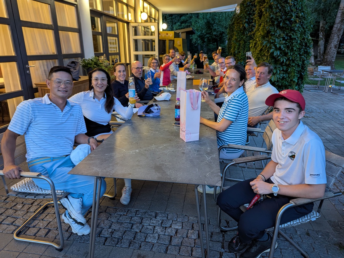 Stimmungsvolle Abendtafel nach der Runde auf der Terrasse. Rechts Bruttosieger Valentin Szika.