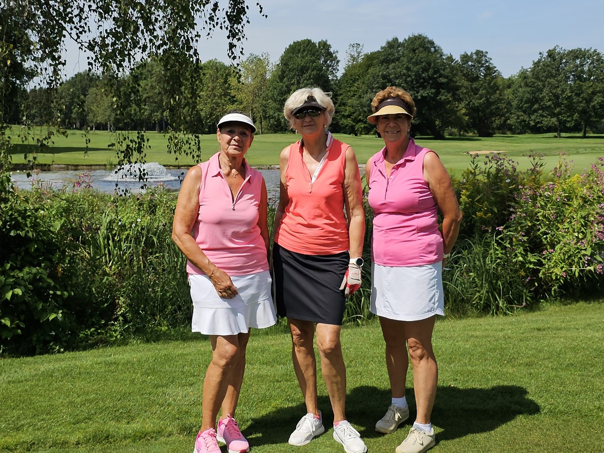 Doppelsiegerin: Marijke Manhold, rechts, gewann das Netto B mit 45 Punkten und den Nearest-to-the Pin mit 1,14 Metern, im Flight mit Mary Brunner, Mitte, und Verena Bruckert.