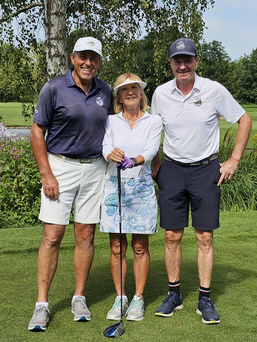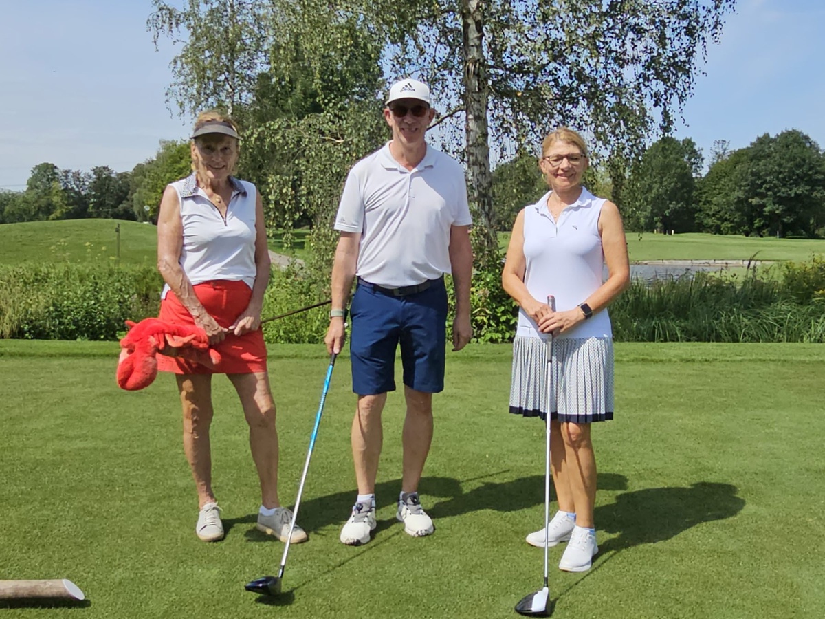 Robert Reiser gewann den Nearest-to-the-Pin mit 2 Metern, im Flight mit Frauke Schleicher, links, und Olga Hauschulte.