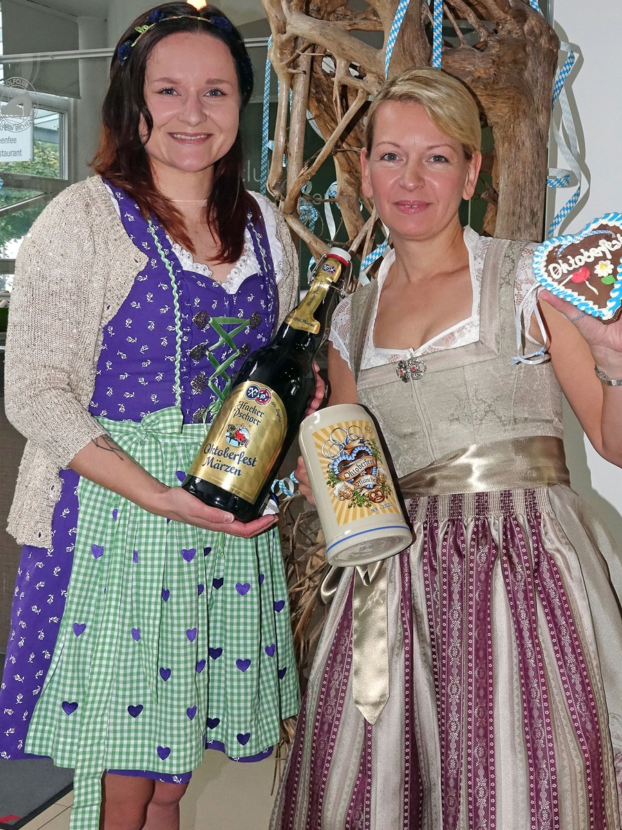 Stilechter Empfang im schicken Dirndl: Mariola Palacz, links, und Angela Rinklake