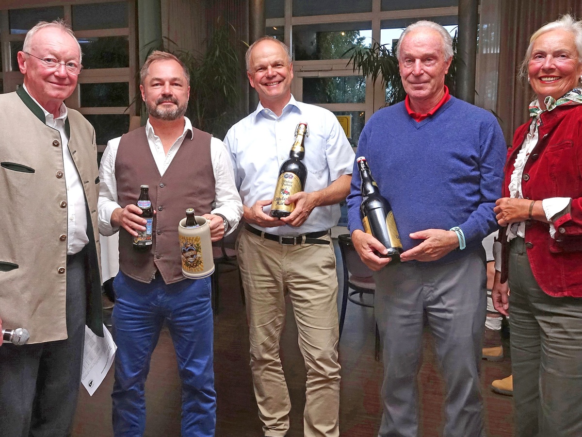 Da die Senioren-Captains auch die Netto C-Wertung gewannen, hier ein gemischtes B und C-Foto, v. l. n. r.: Andreas Diermeier (3. C), Siegfried Lassmann (1. B), Sophie Jäger (2. B), Egon Birnböck (3. B), Barbara Laistner (1. C). Den zweiten Netto B-Platz belegte Michael Werner.