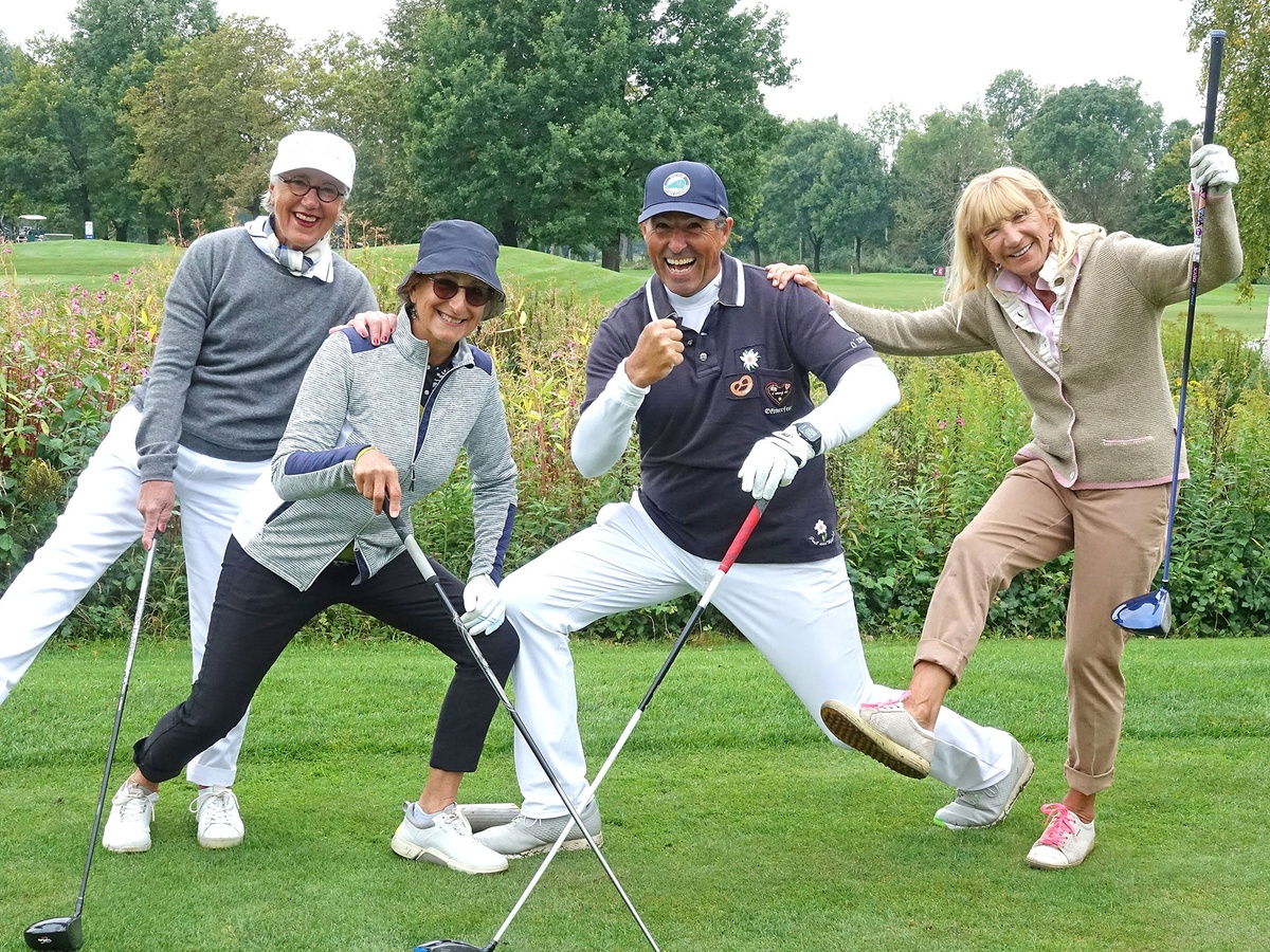 Gewannen die Bruttowertung: Andreas Laubert vom GC Eschenried und Britta Fuhrmann-Krebs, flankiert von den Senioren-Captains Andreas Diermeier und Barbara Laistner