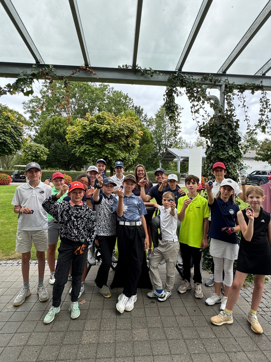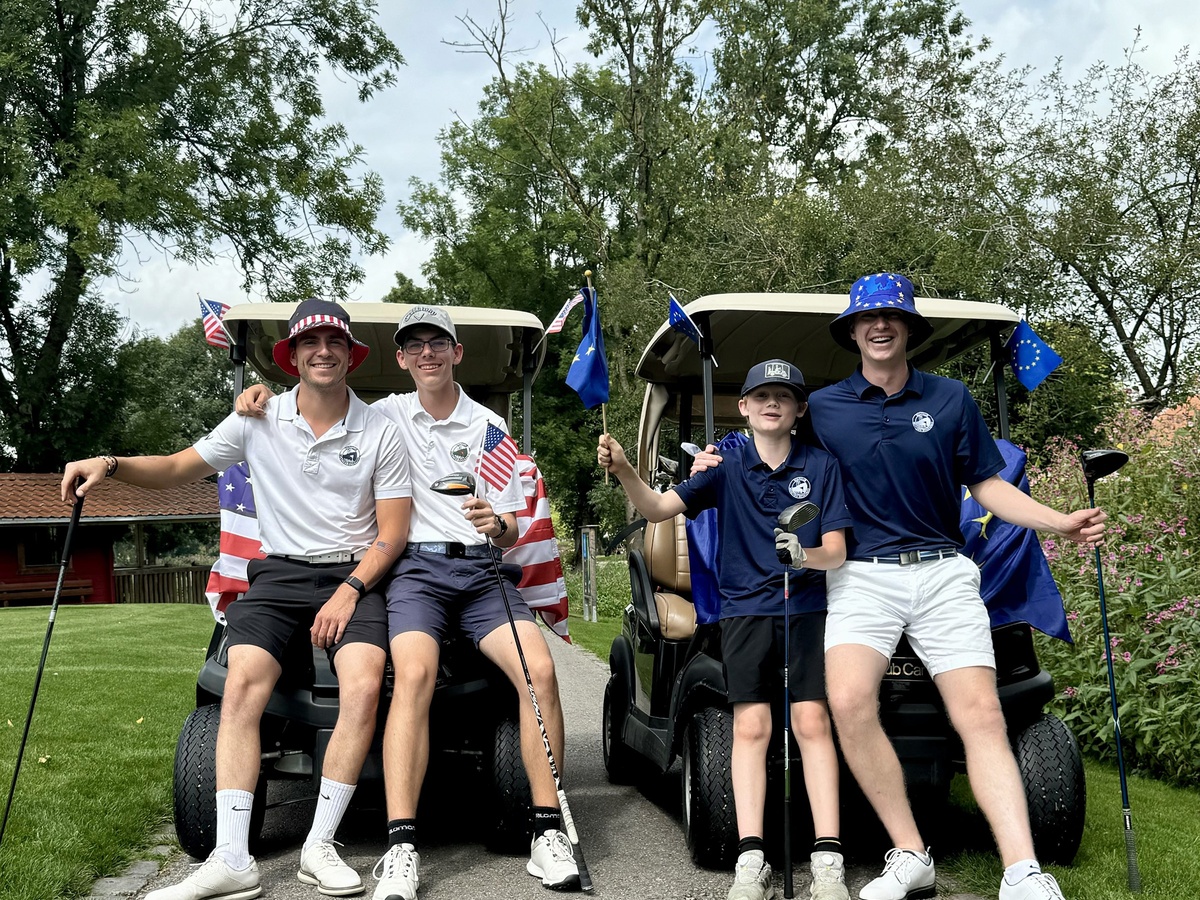 Höhepunkt des Sommercamps: der Eichenrieder Jugend-Ryder Cup mit Gero Lammel als US-Captain, links, mit Lennart Jamborek und Max Wüst als Europa-Captain, rechts, mit Vincent Poruba.