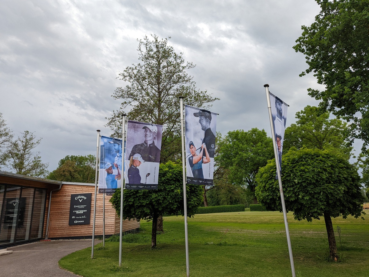 Die Callaway Top-Spieler auf den Fahnen weisen den Weg zum National Callaway Performance Center.