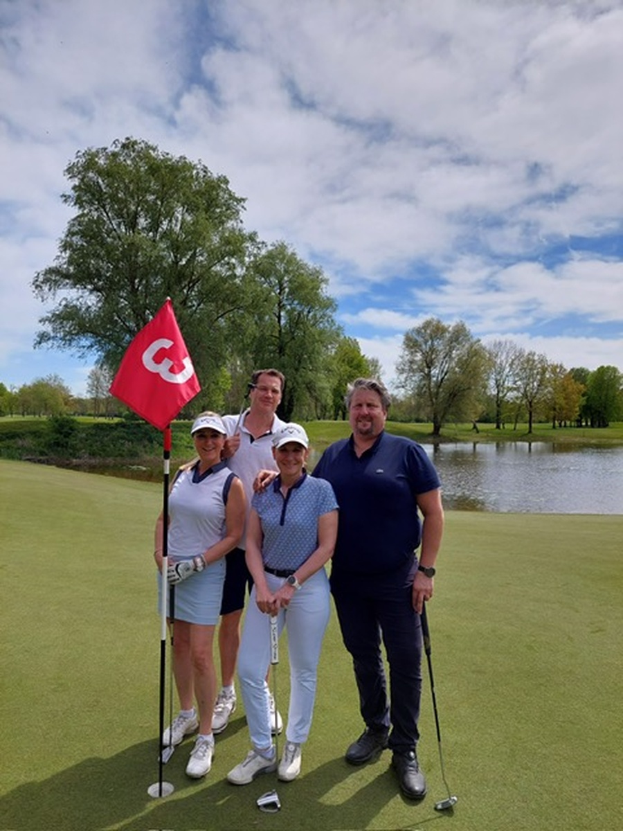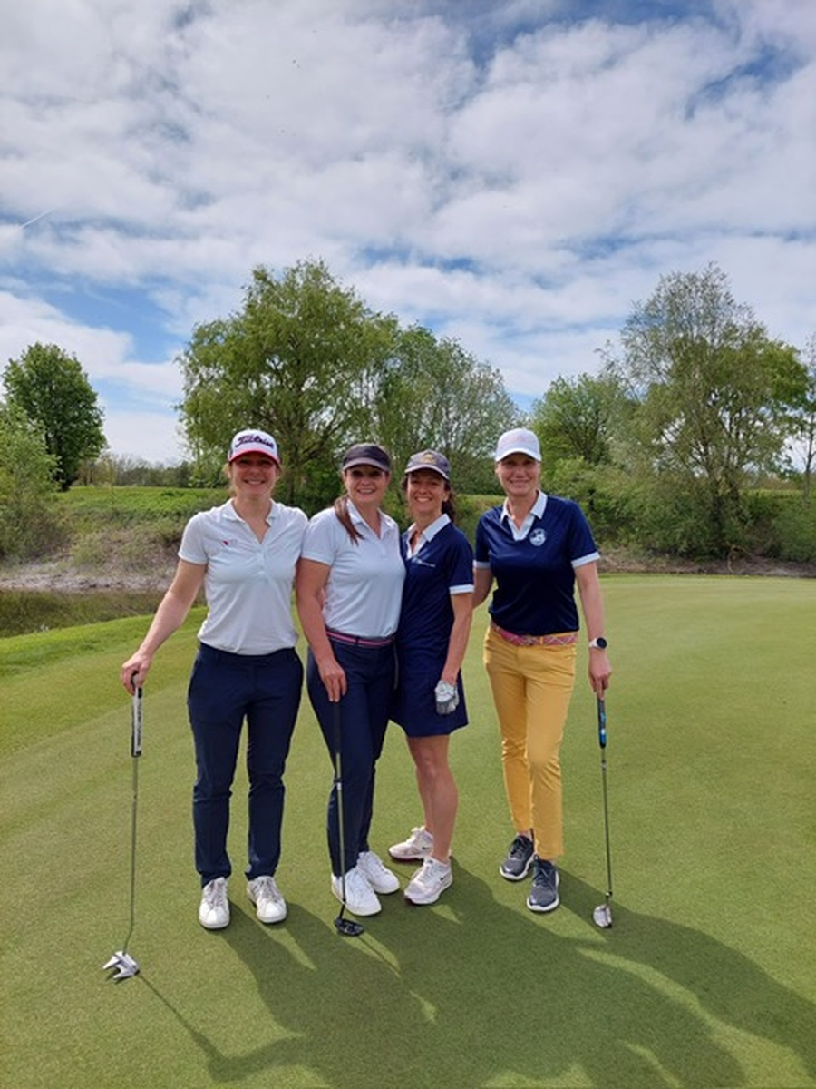 Der siegreiche Damen-Flight war auf dem Platz schon gut gelaunt, v. l. n. r.: Julia Witschel, Alexandra Heyd, Dr. Aimée Beck-Wolf und Kristin Poruba