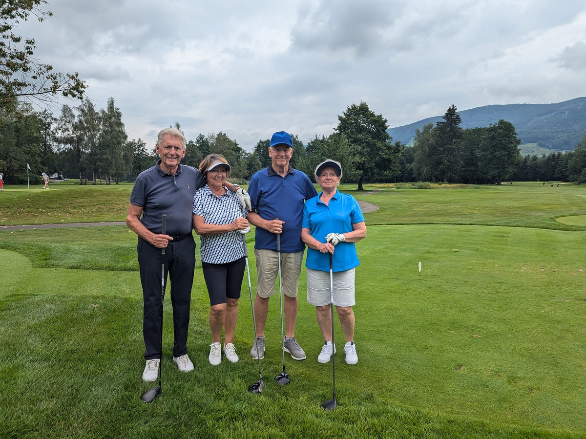 Bälle-Sponsor Peter Doden mit Ehefrau Gerhild Bliss im Flight mit dem Ex-Ex-Senioren-Captain Erhard Meier und seiner Frau Brigitte
