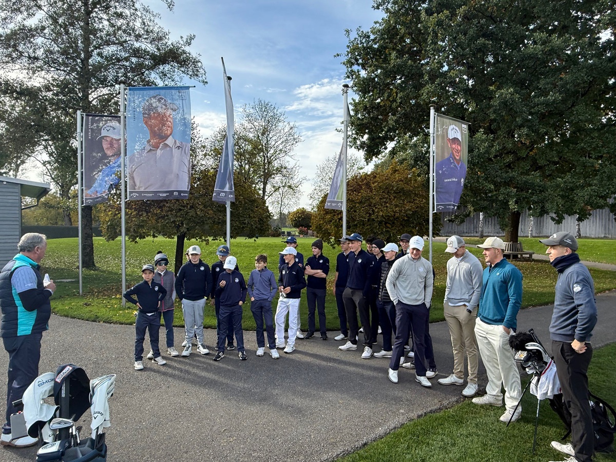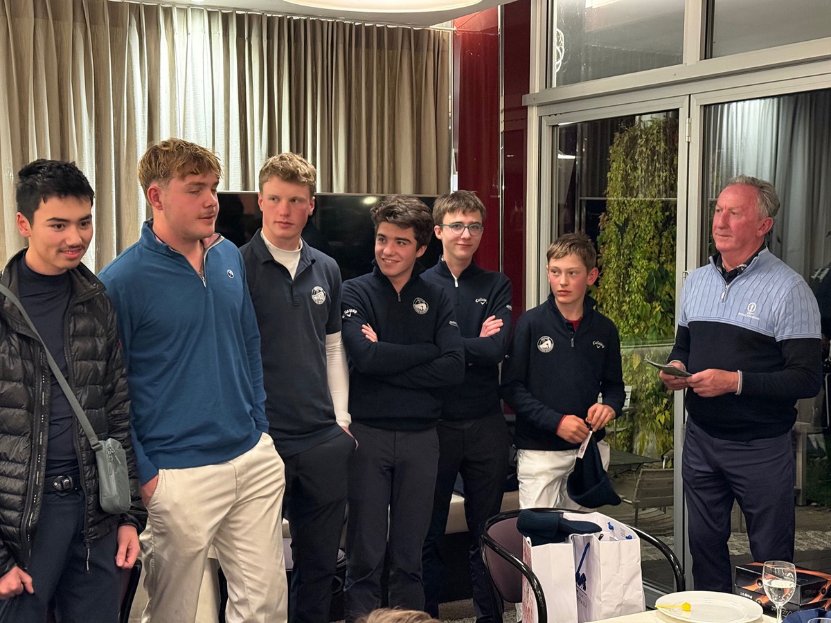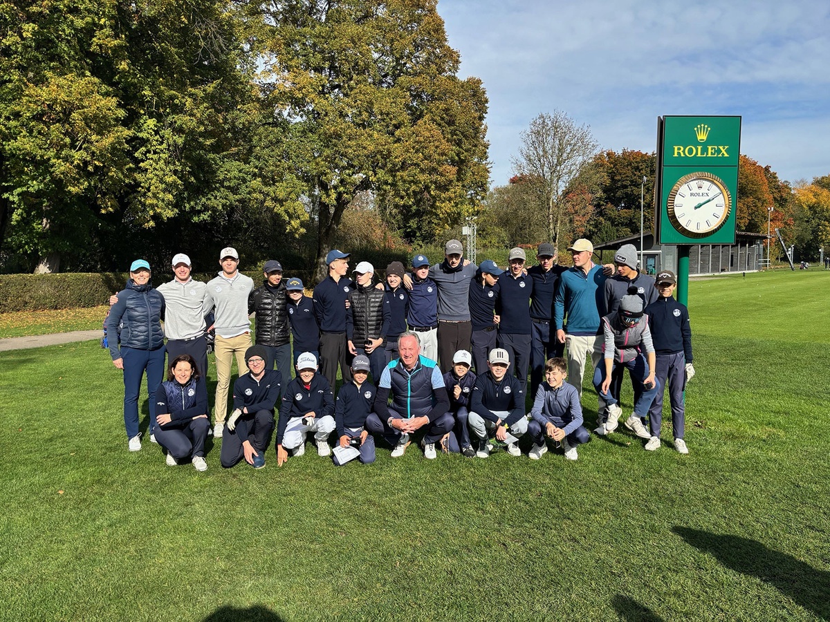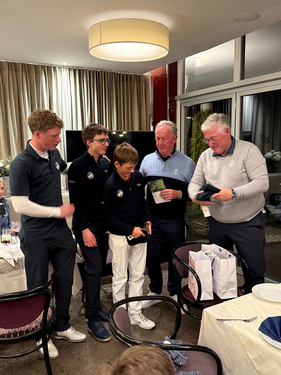 Der Siegerflight freute sich über die FC Bayern-VIP-Tickets, überreicht von Dr. Martin Fritz: v. l. n. r. Marcus Rothe, Severin Szika und Constantin Fritz mit Ken Williams.