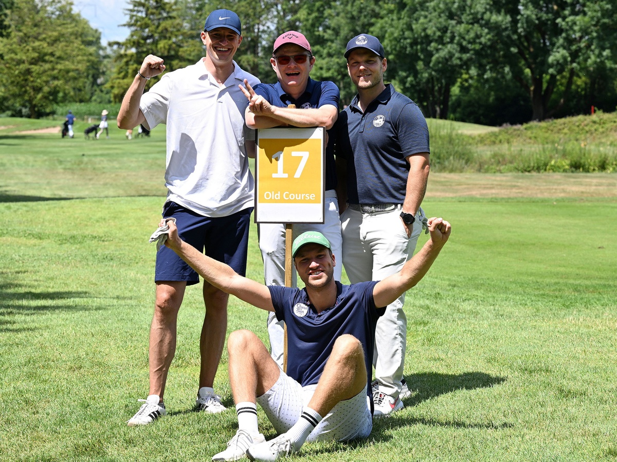 Netto A-Sieger nicht ganz vollständig umrahmt von Präsident Karl-Friedrich Löschhorn und Sportbeirätin Vera Vaubel: Roland Hagenbucher (2.) und Jacob Schippan (1.)