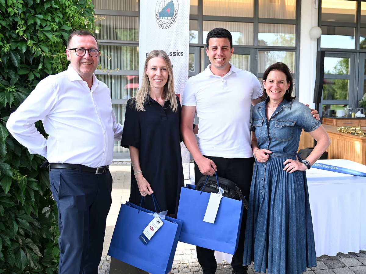 Die Nearest-to-the-Pin-Sieger Dr. Julia Witschel und Hans-Werner Heinl bekamen ihre Preise überreicht vom Präsidenten und der Sportbeirätin.