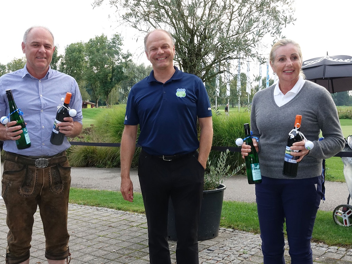 Brutto-Sieger: Christian Gritsch und Evi Rath mit Sponsor und Allianz-Mann Marcus Ziegert in ihrer Mitte